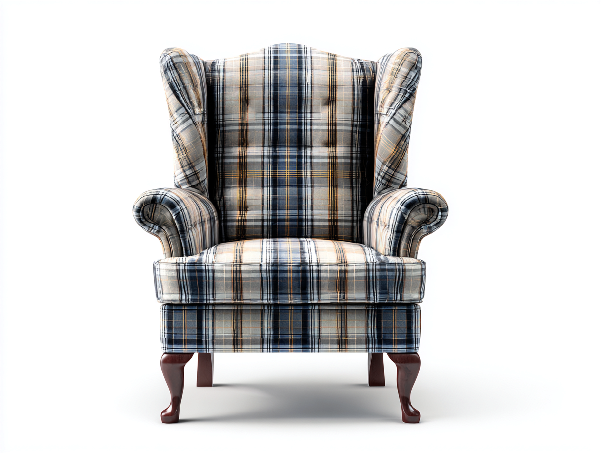 Structure en bois, revêtement en tissu à carreaux avec finition traditionnelle.